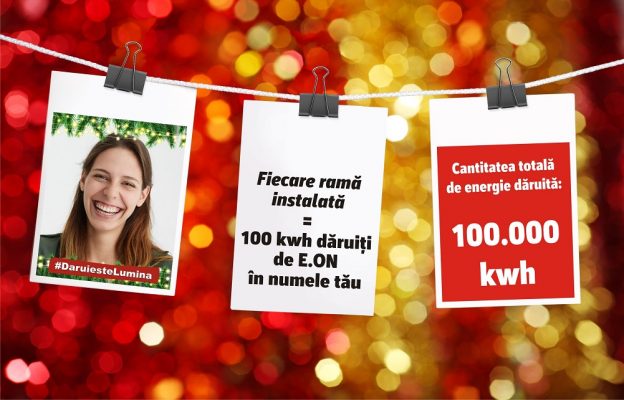 Peste o mie de utilizatori din reţelele sociale au răspuns invitaţiei E.ON de a se gândi la semenii lor şi a le aduce bucurie de sărbători printr-un gest simplu. Tot ce au trebuit să facă a fost de a-şi personaliza fotografia de profil cu rama campaniei „Dăruieşte Lumină”, menţionând totodată una dintre cele patru instituţii sociale pe care au dorit să o ajute prin direcţionarea unei părţi din cantitatea de 100.000 kWh pusă la dispoziţie de E.ON Energie România.