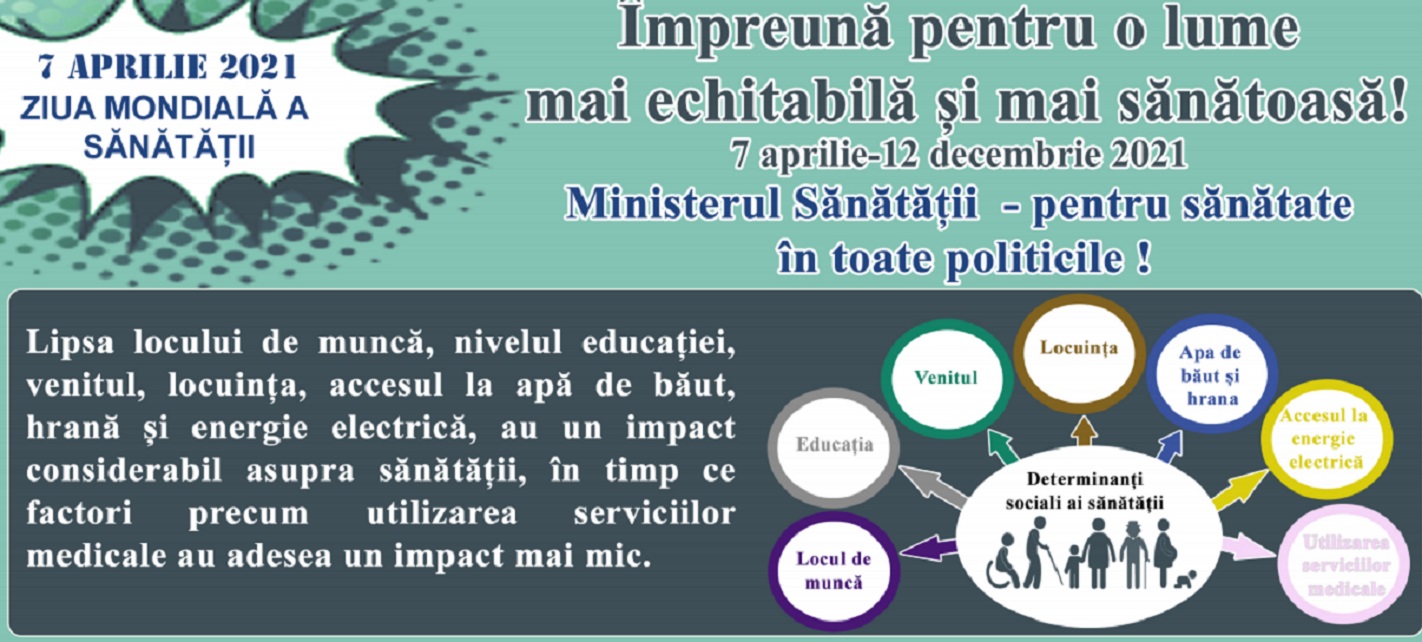Ministerul Sănătății cu ocazia Zilei Mondiale a Sănătății 7 aprilie 2021, lansează o campanie de informare, educare, comunicare, sub sloganul Împreună pentru o lume mai echitabilă și mai sănătoasă!, campanie care aduce în atenția decidenților și a populației necesitatea intervențiilor în toate politicile pentru diminuarea inechităților în materie de sănătate.