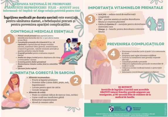 În perioada iulie – august 2025 Institutul Național de Sănătate Publică și Direcțiile Județene de Sănătate Publică și a Municipiului București derulează campania de informare, educare și conștientizare dedicată promovării sănătăţii reproducerii.