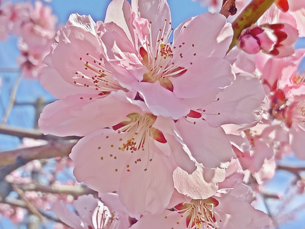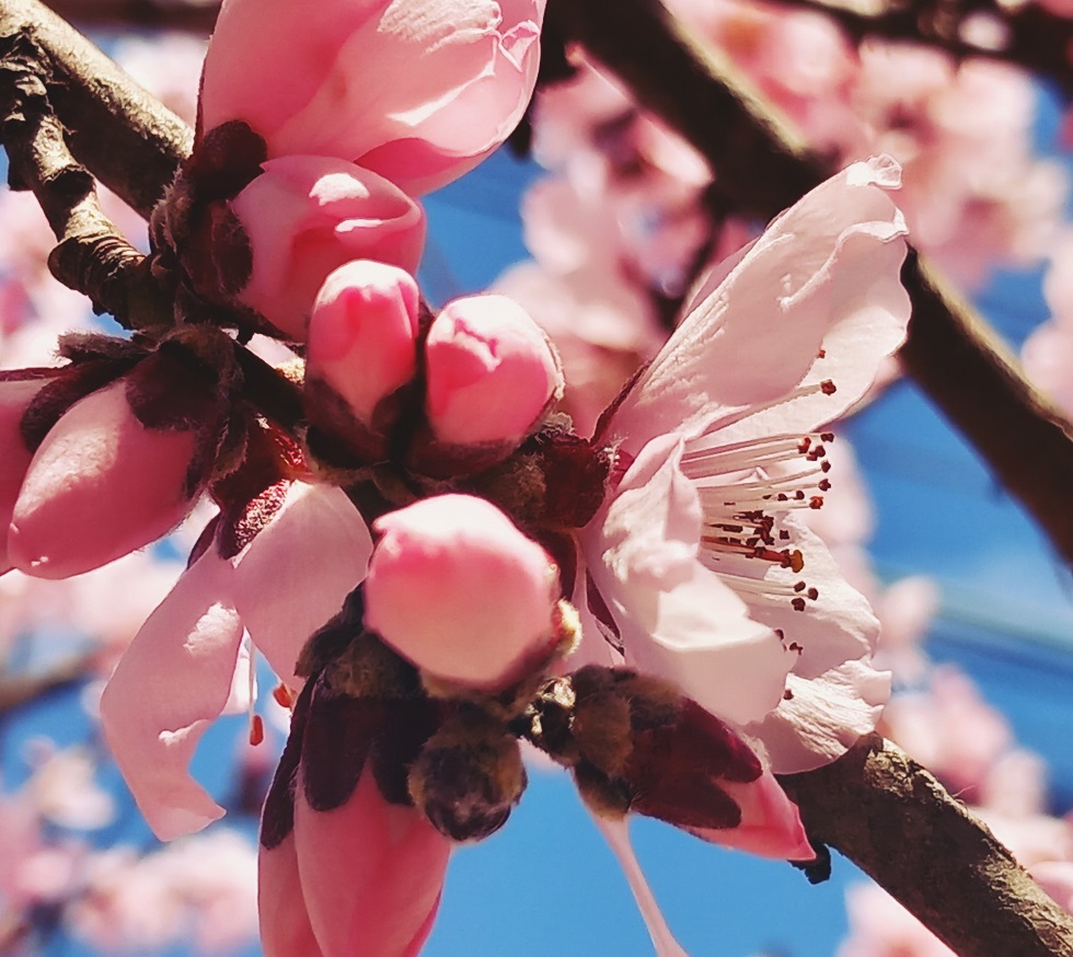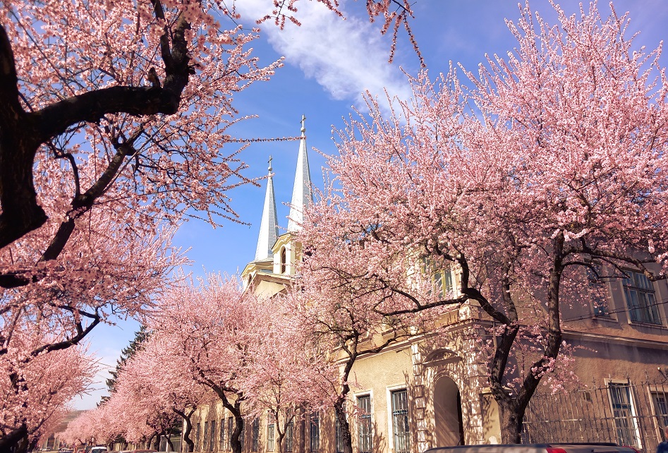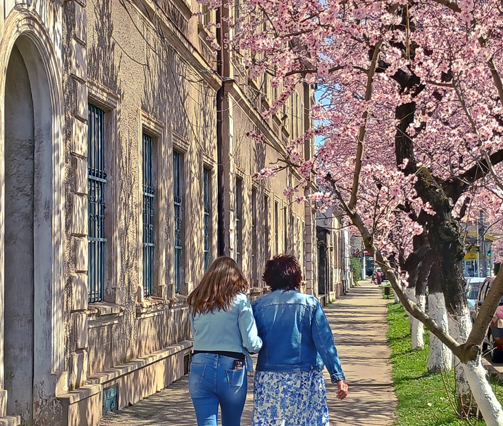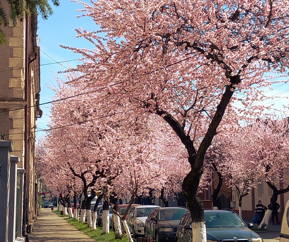 Zeci de piersici ornamentali îşi etalează puzderia de coroniţe rozalii. Cât e strada de lungă, atât de aprigă este şi primăvara. Cu petalele deschise, florile se bucură de aerul începutului de viaţă. Arome îmbietoare aduc albinele în incursiuni harnice, care umplu aerul de zumzăit. Explozia de culoare are cele mai fermecătoare nuanţe, fragede şi copilăroase. Geometrii trandafirii felurite îmbracă ramurile zvelte şi aruncă către senin diademe, cercuri, ovaluri sau conuri viu colorate, într-un amestec care îţi răsfaţă privirea. Ochii văd, inima se înveleşte blând cu speranţă, sufletul se bucură. Este un recital care ţine zile şi nopţi în şir, cu ritm romantic şi rime potrivite de viaţă pentru că: „florile sunt poeziile pământului”. (Valeria Mahok)