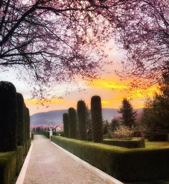 Nicolae Păcurar fotografiază primăvara în acest loc de mai bine de 30 de ani, de pe vremea când piersicii au fost aduşi să înfrumuseţeze locul şi să bucure viaţa siderurgiştilor. „Istoria copăceilor este parte din istoria oraşului şi începe cu ani înainte de Revoluţie, atunci când cei care conduceau oraşului au vrut să ofere ceva frumos muncitorilor Hunedoarei. Oamenii munceau din greu, dar aveau locuri în oraş în care se relaxau, se plimbau liniştiţi. Acum combinatul a murit, dar natura a mers înainte”, povesteşte Nicolae Păcurar. Când a început amenajarea străzii, în anii’80, locul era o stradă ca oricare alta. Decidenţii au decis să fie plantaţi aici, de-o parte şi de alta, de-a lungul trotuarelor, aproape o sută de piersici ornamentali. De altfel, “prunus persica” îşi răsfață privitorii cu abundența florilor roz, parfumate, dar și cu frunzișul fascinant. Copacii plantaţi în anii 80 îşi arată recunoştinţa în fiecare primăvară şi transformă locul în cea mai fermecătoare stradă de primăvară. La câteva zeci de kilometri depărtare, în cea mai frumoasă grădină a judeţului, la „Giardini di Zoe”, spectacolul roz este desăvârşit.