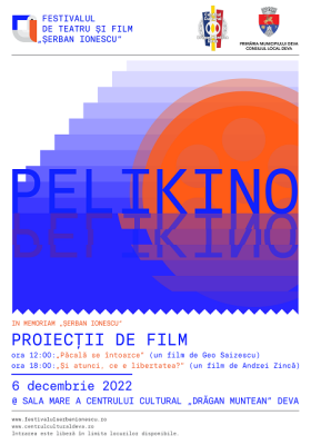 Primăria Municipiului Deva și Centrul Cultural „Drăgan Muntean”, în colaborare cu Festivalul de Teatru și Film „Șerban Ionescu”, vă invită marți, 6 decembrie 2022, la două proiecții speciale de film în cadrul caravanei PELIKINO, un eveniment inedit dedicat memoriei actorului Șerban Ionescu.