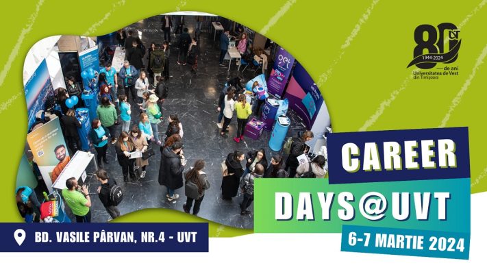 Universitatea de Vest din Timișoara răspunde așteptărilor tinerilor studenți din UVT și din întregul centru universitar timișorean și le propune un eveniment dens de networking, în care vor avea oportunitatea întâlnirii cu reprezentanții marilor companii din economia regiunii de vest. În cadrul „Career Days UVT 2024”, care se va desfășura în zilele de 6 și 7 martie 2024 (în spațiile centrale din sediul principal, V.Pârvan nr 4), studenții vor interacționa cu reprezentanții acestor companii angajatoare, alegându-și cele mai potrivite opțiuni dintre oportunitățile de carieră oferite.