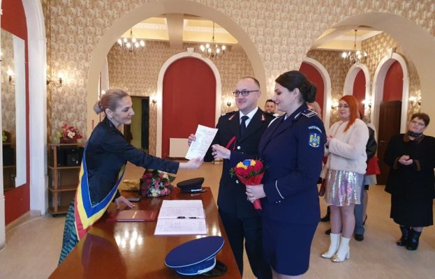 Ea, poliţistă în cadrul Serviciului Rutier Hunedoara, iar el, pompier la ISU Hunedoara, și-au spus „DA”, în fața ofițerului de stare civilă, chiar de ziua de Dragobete.
