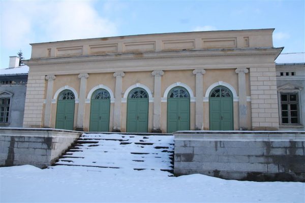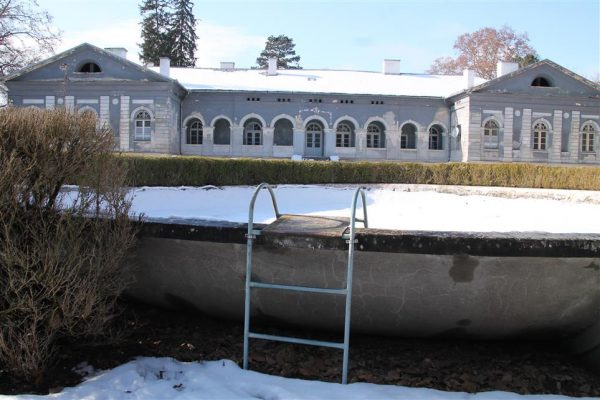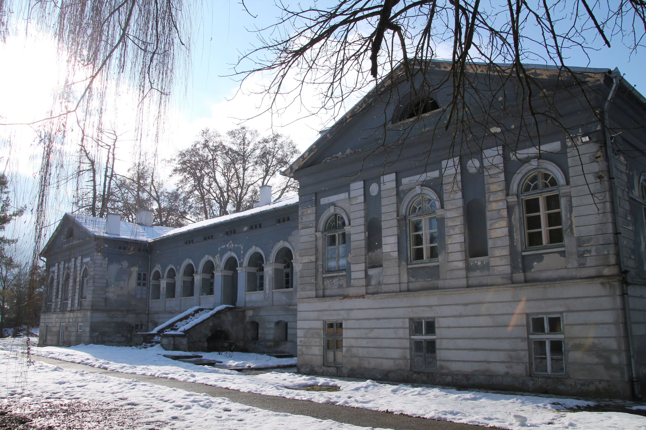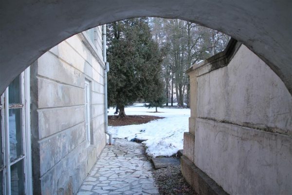 Fântâna arteziană din faţa conacului îşi păstrează forma, dar nu şi utilitatea iniţială: e devenit un soi de piscină semisferică deasupra solului. Scările care urcă în conac, către sala de bal se sfarmă la fiecare pas mai apăsat. Renovările făcute aici de-a lungul vremii au fost doar cârpeli şi nu au nici o legătură cu istoria sau arhitectura. A fost păstrată podeaua originală şi un nou strat de luciu acoperă fibra caldă a lemnului. Tavanele înalte, boltite, uşile şi ferestrele mari dau atitudine regală locului şi te fac să regreţi că nu ai mai prins măreţia de odinioară a castelului nobiliar.