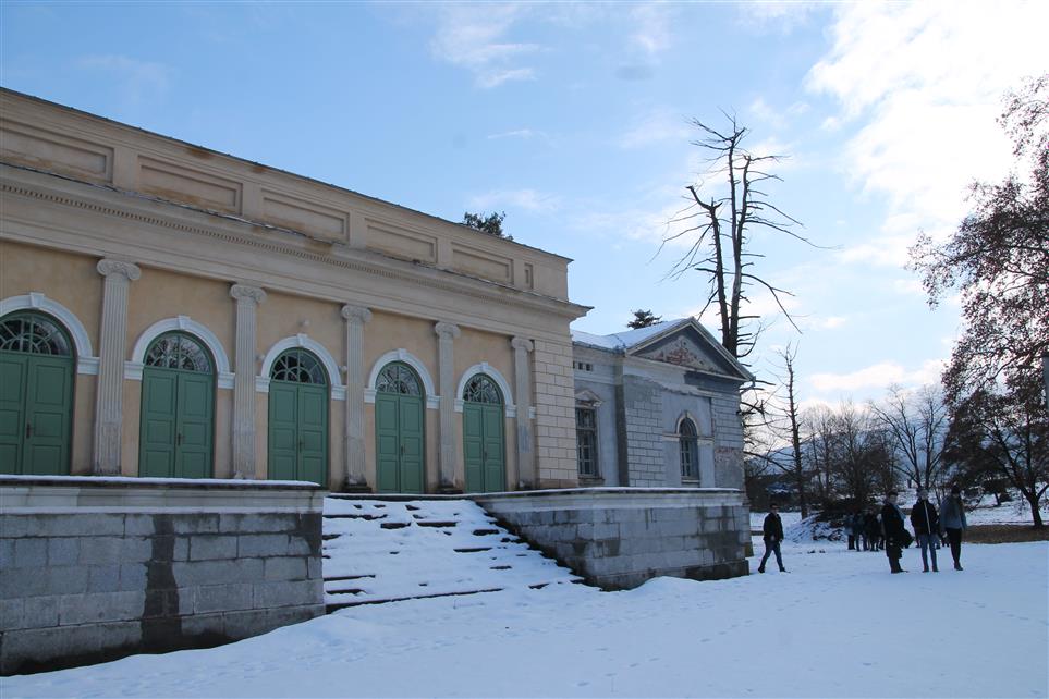 Arhitecţii au gândit şi o perspectivă unică – cu toate uşile deschise, dintr-o aripă a castelului poţi privi, cale de vreo 50 de metri, până în cealaltă parte, priveliştea de dincolo de sticla ferestrei.