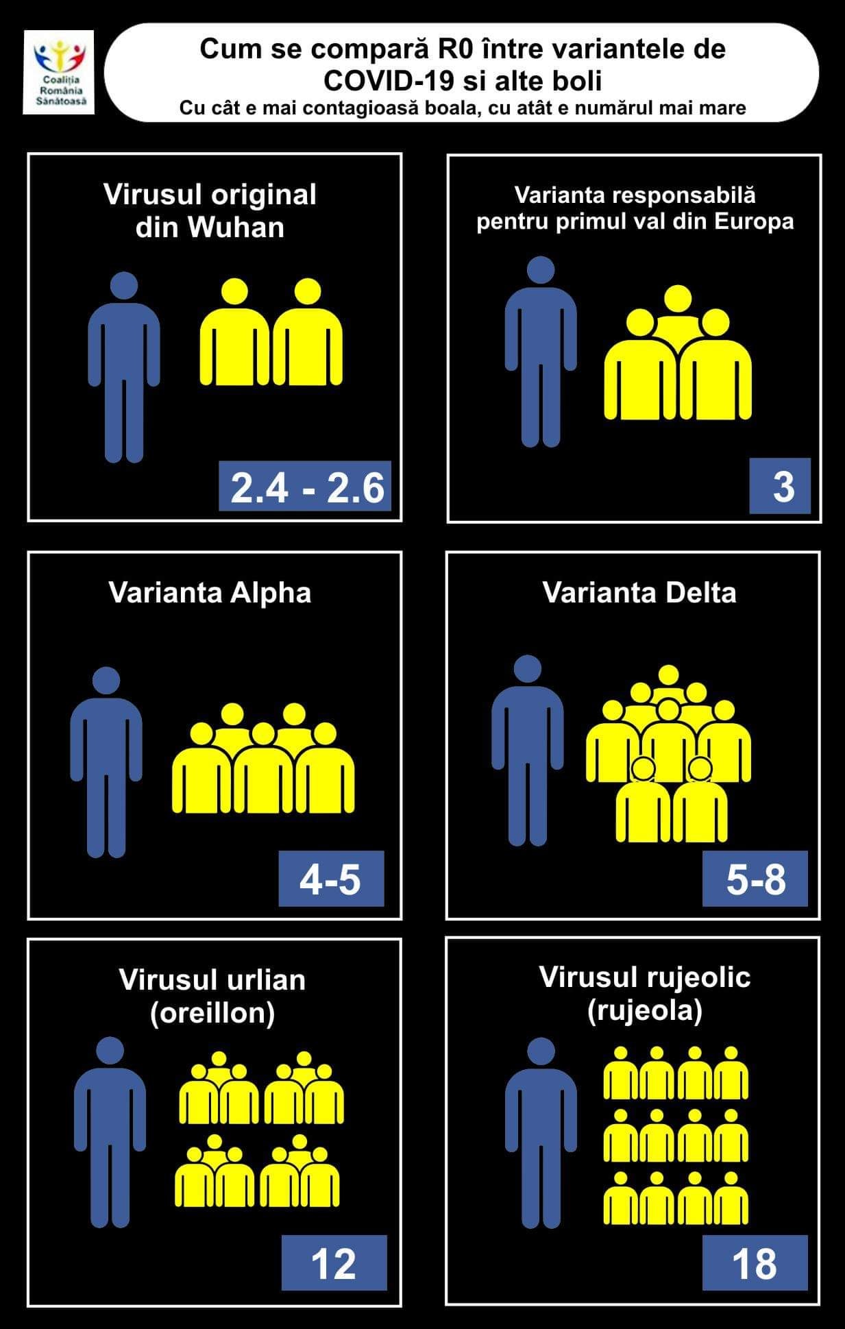 Comform analizei, un purtător de variantă DELTA poate infecta între 5 și 8 persoane, în timp ce un purtător al variantei inițiale a virusului SARS-CoV-2 poate infecta doar 2 maximum 3 persoane.