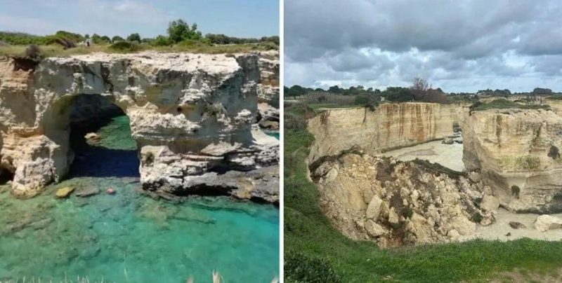 O faimoasă structură stâncoasă de pe coasta italiană a Mării Adriatice, cunoscută sub numele de „Arcul îndrăgostiţilor”, s-a prăbuşit chiar