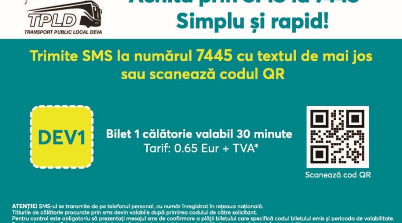 Read MoreSocietatea de Transport Public Local Deva SRL anunță introducerea unei metode moderne, rapide și ușor de utilizat pentru achiziționarea biletelor