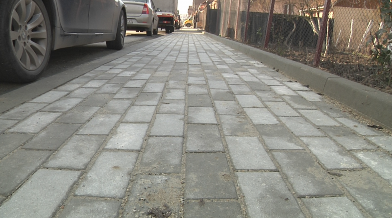 Trotuarul este realizat din dale autoblocante, pe fundație de balast și piatră spartă, încadrat cu borduri. Valoarea investiției este de