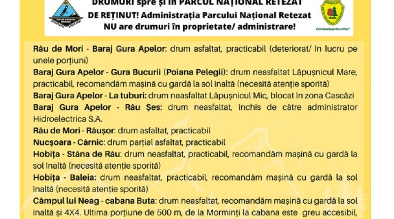 Read MoreAccesul cu autoturismul în Parcul Național Retezat este dificil. Reprezentanții Administrației Parcului Național le recomandă turiștilor să vină cu mașini