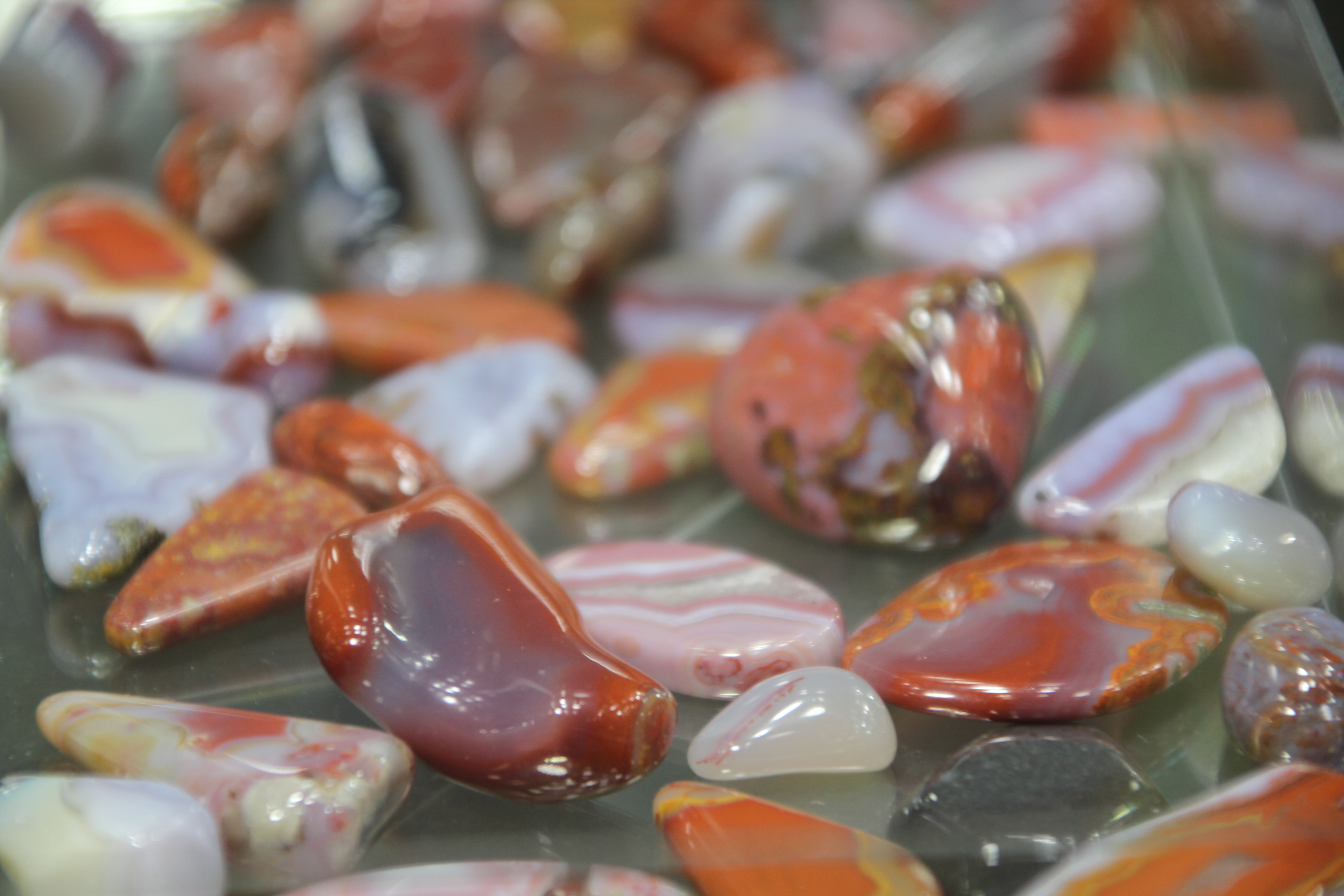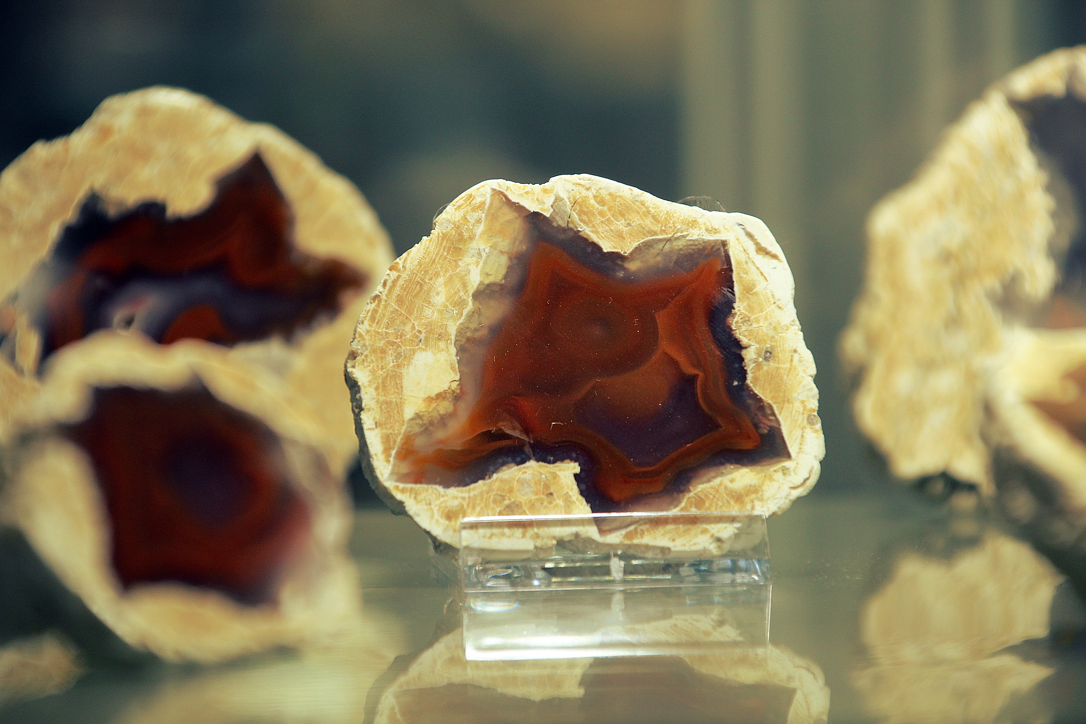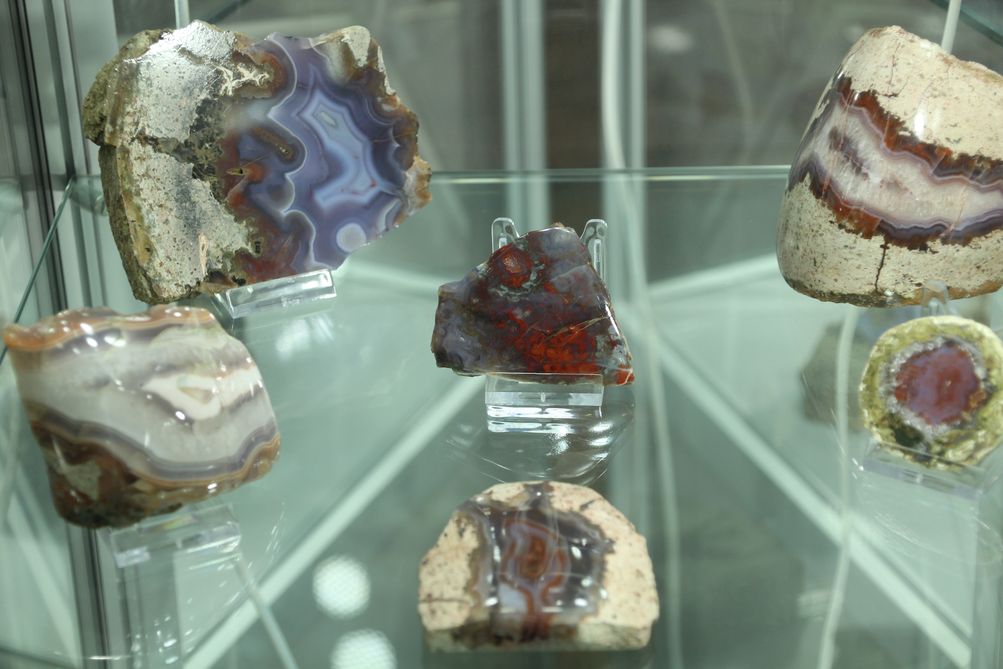 Orânduite în vitrine, tezaure pline de culoare te aşteaptă să descoperi în ele imaginaţia nemărginită a naturii. Piese superbe, satinate sau piramidale, care strălucesc elegant precum diamantele, şed alături de minerale în care cineva parcă s-a jucat cu culori şi a desenat contururi blânde sau îndrăzneţe. Fiecare exponat s-a „gătit” în felul lui pentru a atrage privirea: o defilare de minerale care te surprinde şi te ţine cu ochii pe nuanţe, forme şi lumini. Inimile de piatră se întrec în frumuseţe, iar poveştile spuse de om le adaugă suflet.