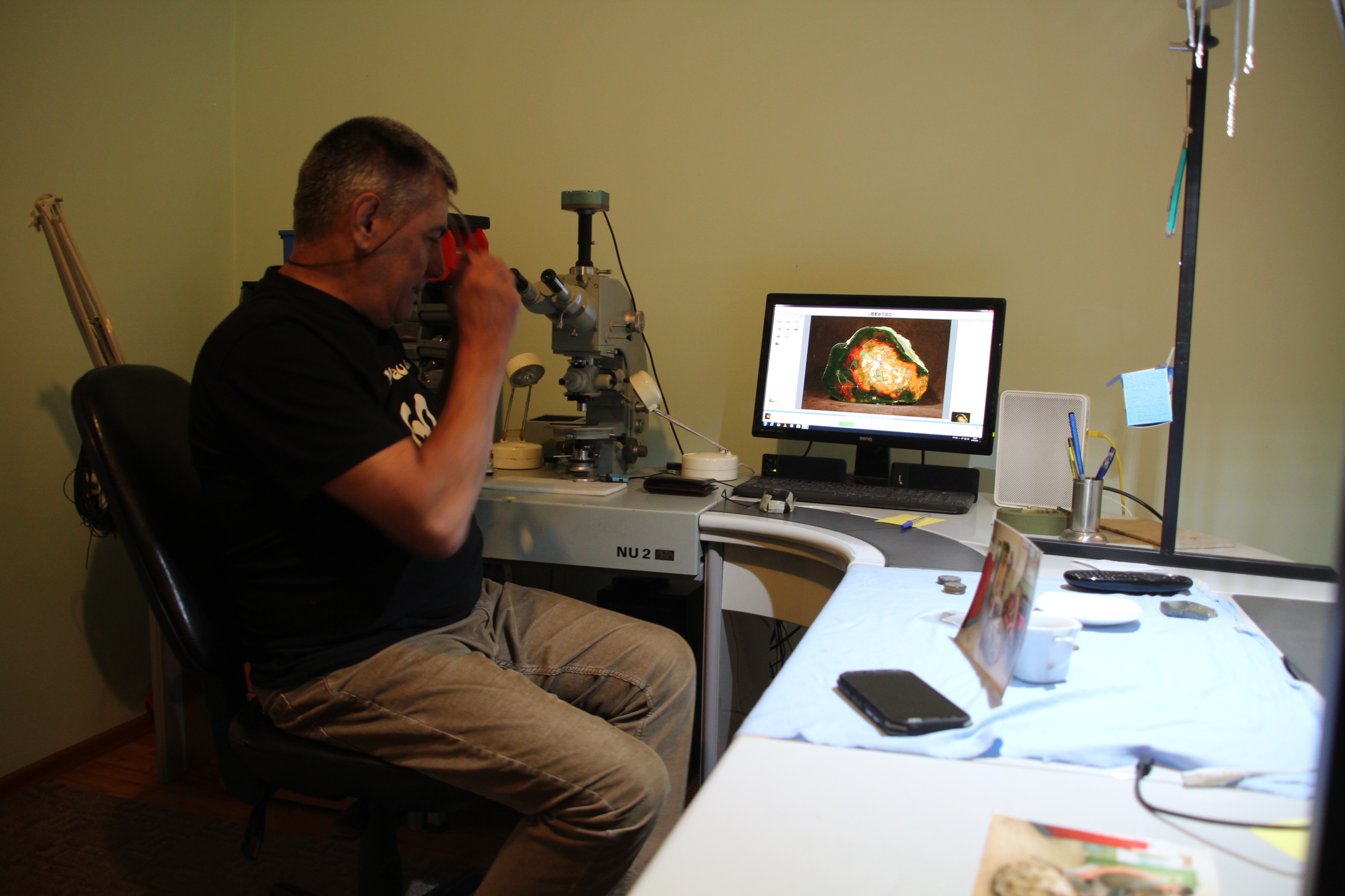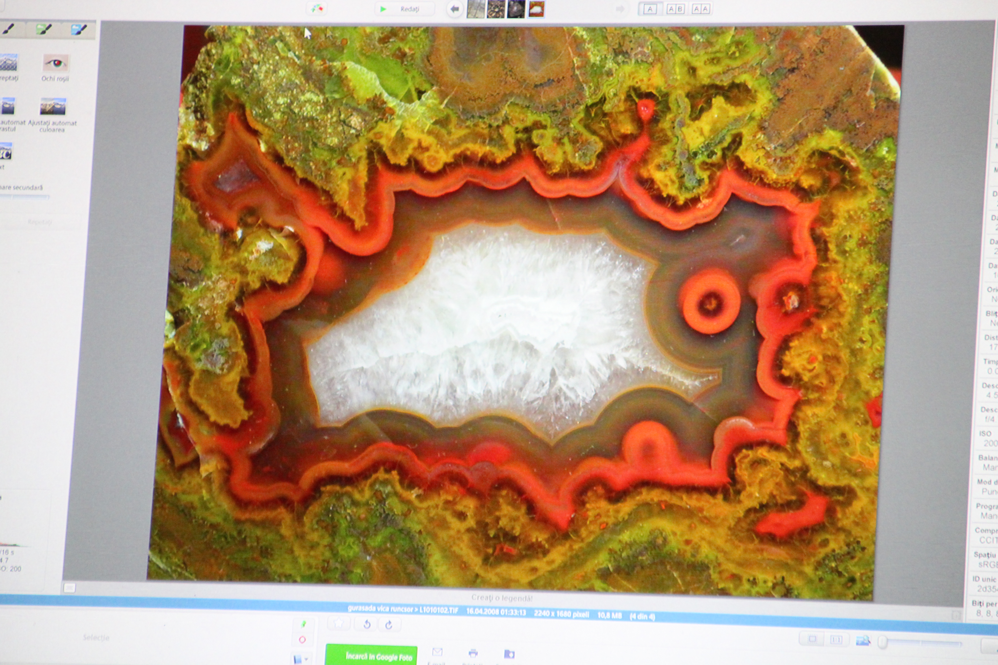 Prelucrarea e costisitoare pentru că, pentru tăiere, ai nevoie de nişte discuri diamantate, cu o structură specială, dură; pentru lustruit e nevoie de nişte platane diamantate, pulberi abrazive pentru a se obţine lustrul desăvârşit. Toate aceste etape sunt frumoase”, mărturiseşte omul. Are aparatură foto, dar şi microscoape pentru a cerceta structura rocilor în cele mai mici amănunte.