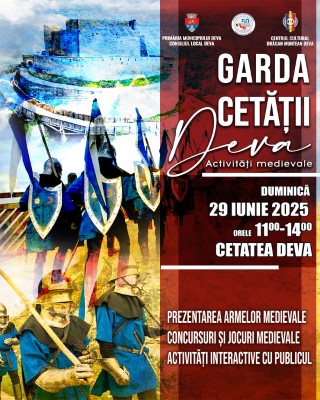 Primăria Municipiului Deva și Centrul Cultural „Drăgan Muntean” vă invită duminică, 29 iunie 2025, între orele 11:00 – 14:00, în Cetatea Deva, pentru a păși într-o lume plină de farmec medieval.