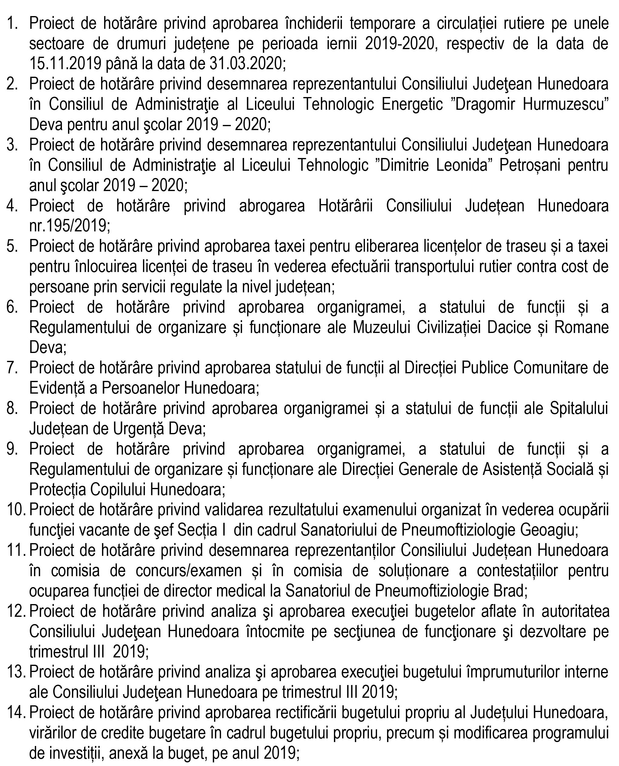 Ce proiecte de hotărâre se vor vota în ședința ordinară a Consiliului Județean Hunedoara