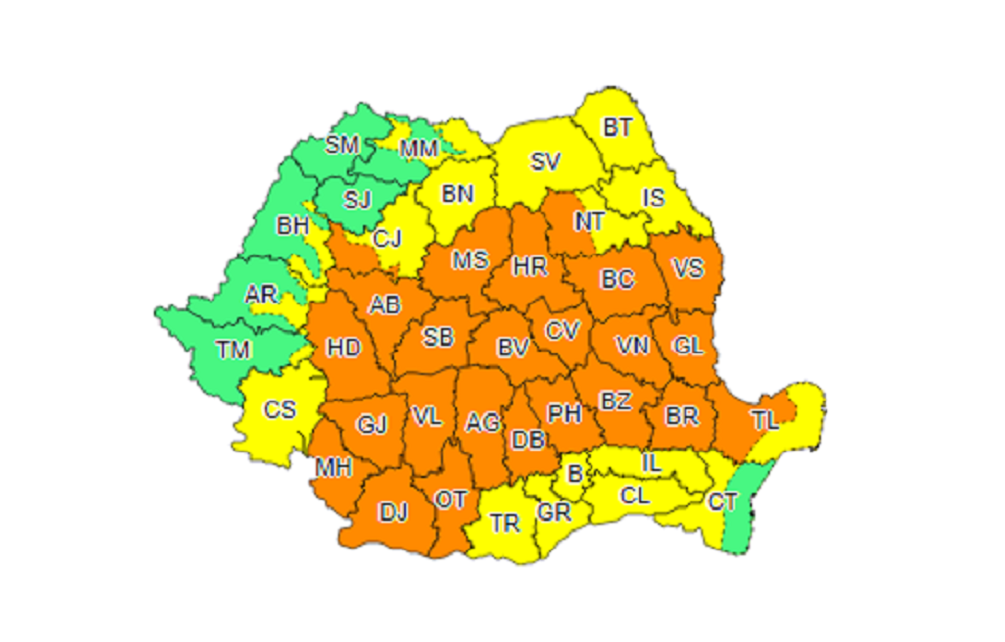 De asemenea, ANM anunţă instabilitate atmosferică accentuată, vijelii puternice în perioada 24 iulie, ora 14:00 – 24 iulie, ora 23:00, fiinmd emisă o avertizare cod portocaliu.