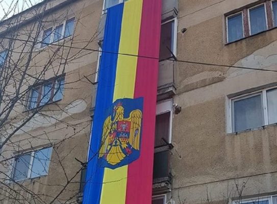 Cel mai mare drapel, arborat la fereastra unui apartament