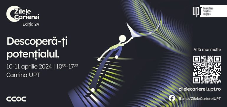Universitatea Politehnica Timișoara, prin Centrul de Consiliere și Orientare în Carieră (CCOC), organizează cea de a XXIV-a ediție a evenimentului Zilele Carierei, cel mai mare târg universitar de locuri de muncă pentru studenți și absolvenți din vestul țării. Evenimentul, la care vor participa peste 50 de companii, ONG-uri, reprezentanți ai administrației publice sau organizații de stat, se desfășoară în zilele de 10 și 11 aprilie 2024, în Cantina UPT din Complexul Studențesc Timișoara.