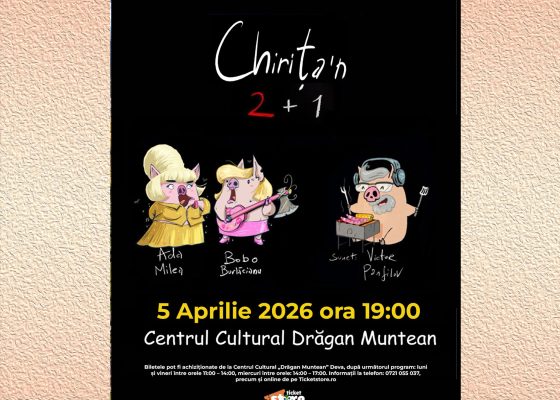 Publicul din Deva este invitat la o seară plină de energie, umor savuros și personaje memorabile! Spectacolul muzical-teatral „Chirița’n 2 + 1” se va juca pe 5 aprilie 2026, de la ora 19:00, la Centrul Cultural „Drăgan Muntean” din Deva, promițând o experiență teatrală vibrantă și imprevizibilă.
