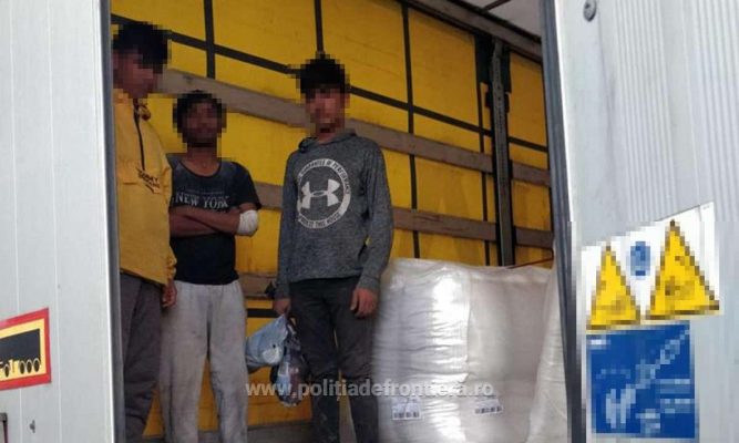 În urma efectuării controlului amănunţit al mijlocului de transport, au fost descoperiți, ascunși în compartimentul pentru marfă, trei cetățeni străini.