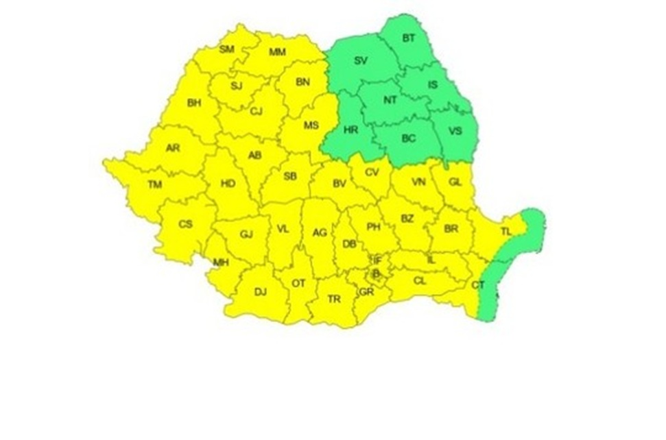 În intervalul 26 iunie, ora 10 – 27 iunie, ora 10, va fi în vigoare o avertizare meteorologică cod galben, fiind prognozate val de căldură, caniculă şi disconfort termic ridicat