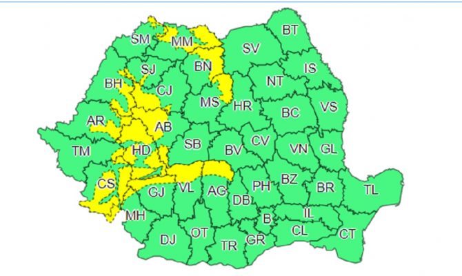 Avertizarea va intra în vigoare marţi, la ora 18.00, şi este valabilă până joi, la ora 12.00.