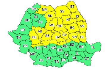 Administraţia Naţională de Meteorologie (ANM) a actualizat atenţionarea Cod galben, pentru intervalul marţi, ora 11.00 – miercuri, ora 10.00.