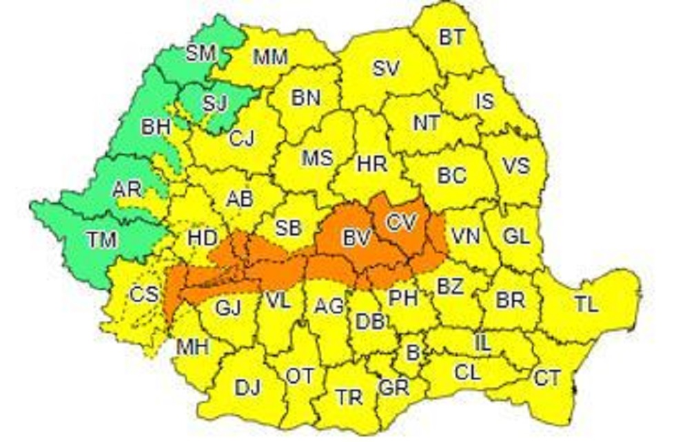 Meteorologii au emis o avertizare Cod galben de ploi şi ninsori, valabilă până joi dimineaţă, în cea mai mare parte a ţării, iar la munte şi local în Transilvania şi Moldova stratul de zăpadă nou depus va fi consistent. În zona Carpaţilor Meridionali şi de Curbură, va fi Cod portocaliu de ninsori abundente şi viscol, care va reduce vizibilitatea.