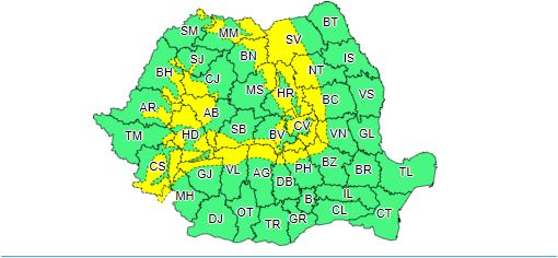 Cod galben de vânt puternic în peste 20 de județe. La munte ninge