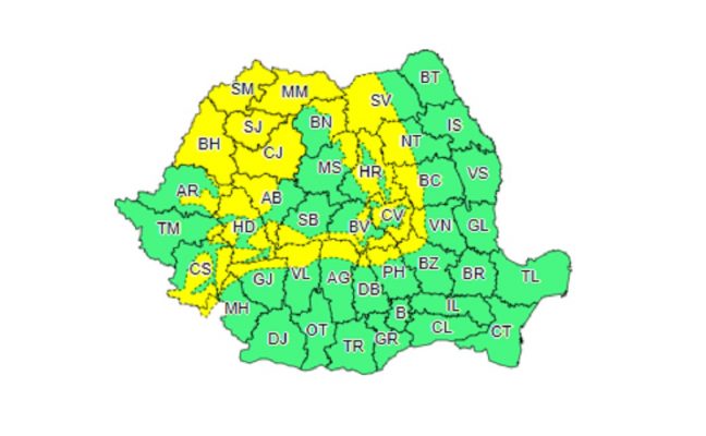 Meteorologii anunţă cod galben de vânt puternic în zonele de munte şi în judeţele din nord-vestul ţării, până vineri dimineaţă, fiind afectate în total 27 de judeţe. La munte, rafalele vor depăşi 100 de kilometri la oră.