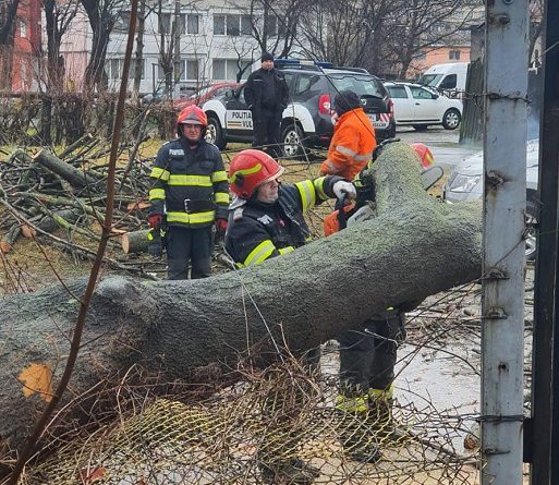 Un echipaj de pompieri din cadrul Detașamentului Petroșani a intervenit în această dimineață în localitatea Vulcan, unde din cauza vântului puternic un copac a fost doborât. În urma evenimentului două autoturisme au fost ușor avariate, fără a fi înregistrate victime.