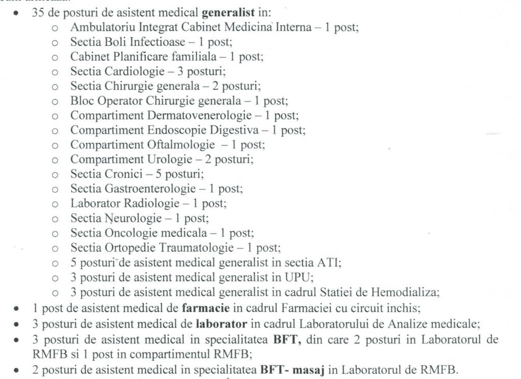 Spitalul Municipal „Dr. Alexandru Simionescu” din Hunedoara a anunțat organizarea concursului pentru ocuparea a 44 de posturi de asistenți medicali, după cum urmează: