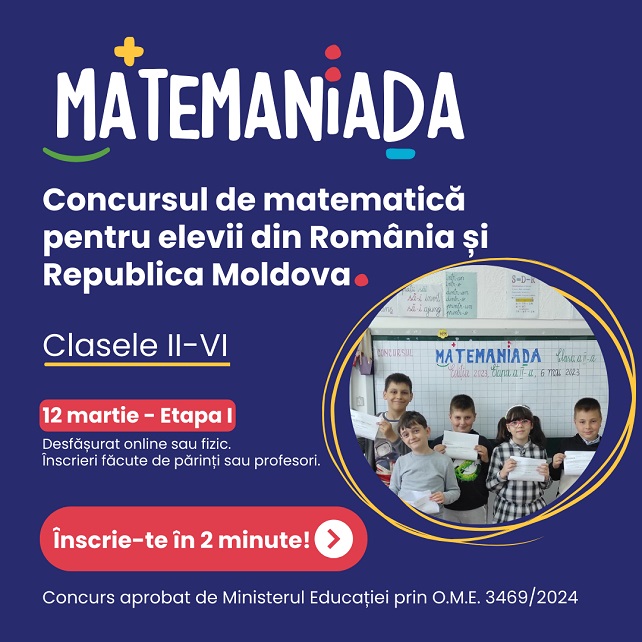 Matemanie+, centrul educațional unde peste 8000 de elevi s-au pregătit în ultimii 8 ani la matematică, dă startul înscrierilor la cea de-a doua etapă a concursului de matematică Matemaniada, un proiect aprobat de Ministerul Educației prin O.M.E. 3469/2024 în care competiția devine un prilej pentru dezvoltarea încrederii de sine și pentru stimularea interesului pentru matematică.