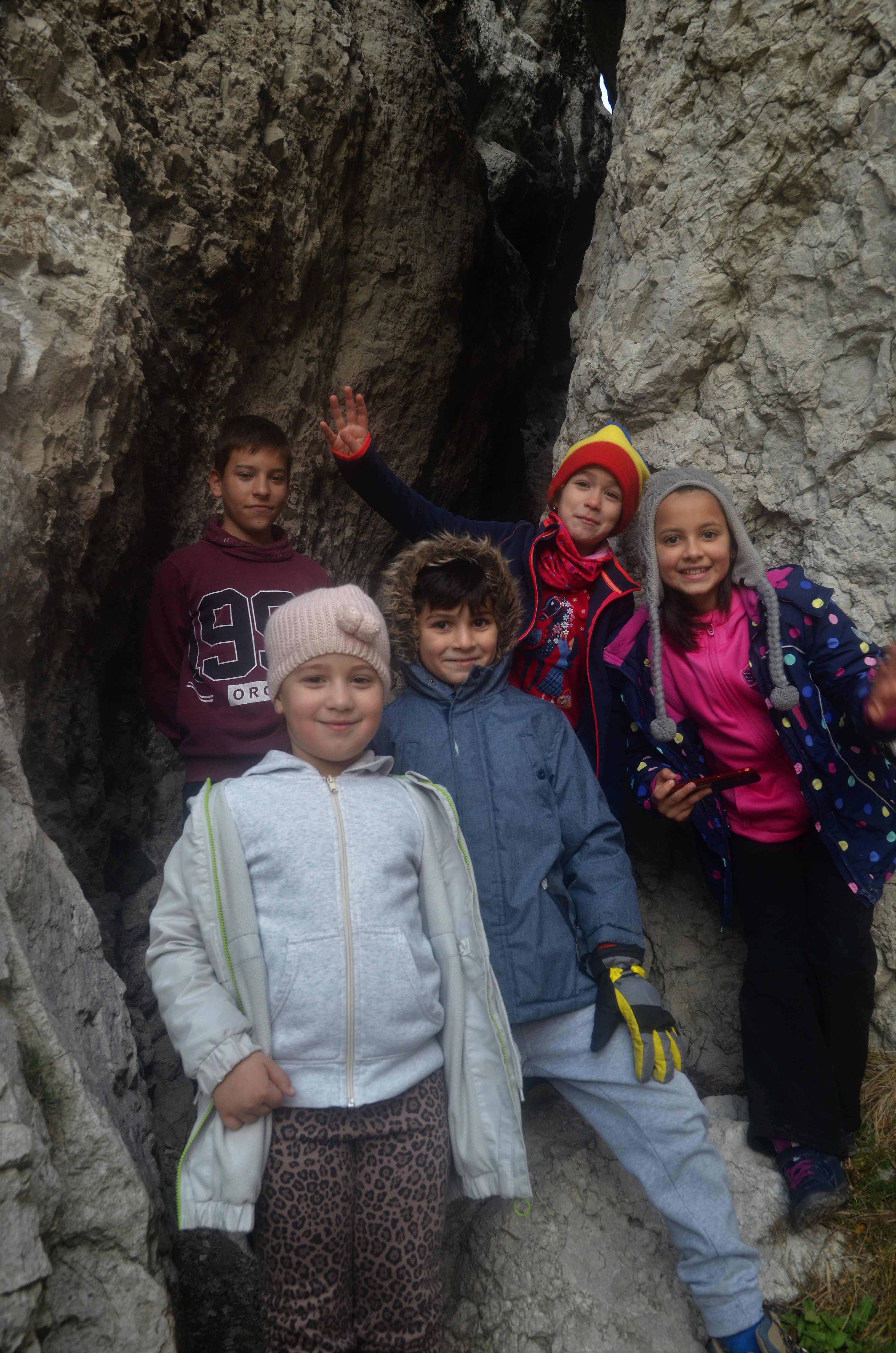 Dan, lipit de stâncă, pătrunde printre pereții înguști în roca imensă și strigă copiilor să-l urmeze. E absolut fenomenal. Câțiva metri am șerpuit prin interiorul steanului de piatră, care se îngusta treptat ca apoi să se vadă celălalt capăt al strâmtorii.