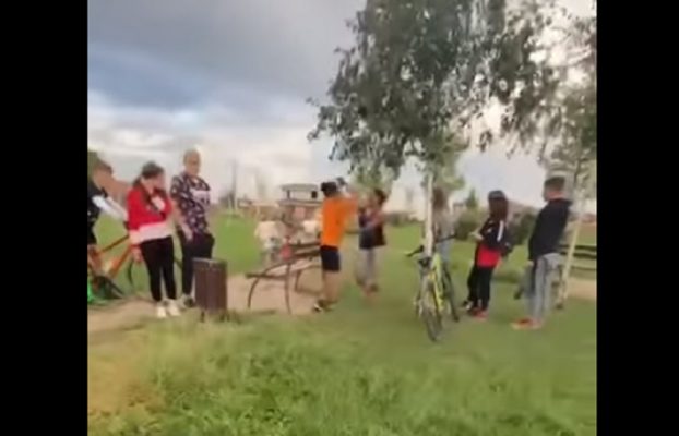 Mama micuţei a mers în parc şi l-a luat la bătaie pe adolescentul de 13 ani. Copilul a încercat să se apere, însă a fost trântit la pământ de femeie.
