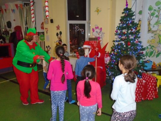 Ca să ducă la bun sfârșit trebușoara asta pentru Ioana, Bubulina, șefa de distracție, n-a fost tocmai ușor! A trebuit să se dea de mai multe ori peste cap ca să se transforme-n elful trebuincios. Și, de aici, ca să joace, să se joace și să împace, 15 copii, ba mai mici, ba mai mari, de la câțiva anișori până la anii adolescenței. E greu de pus în cuvinte ce s-a-ntâmplat acolo. Lucrurile astea se trăiesc mai mult cu inima, decât în vorbe. Că își vor aduce aminte, peste ani, cum a venit Moș Crăciun, e un lucru cert. Cuiva, unuia dintre băiețeii prezenți la petrecere, chiar i s-a părut că el îl știe pe Moșu’. Din cartier! Așa că i-a strigat asta în față: “Eu te știu pe tine!” Însă moșul i-a explicat că nu are cum să-l fi văzut, că și el, ca și Feri și Mariana și Ioana, au venit ca să le facă ziua asta nespus de frumoasă, de peste mări și țări. E drept a recunoscut că-l doare un pic “spătucu’”, de la fotbal, dar cine știe, nu-i așa, dacă nu cumva și Moșul are dreptul să joace fotbal cu elfii și cu spriridușii din Laponia, țara zăpezilor, țara lui.