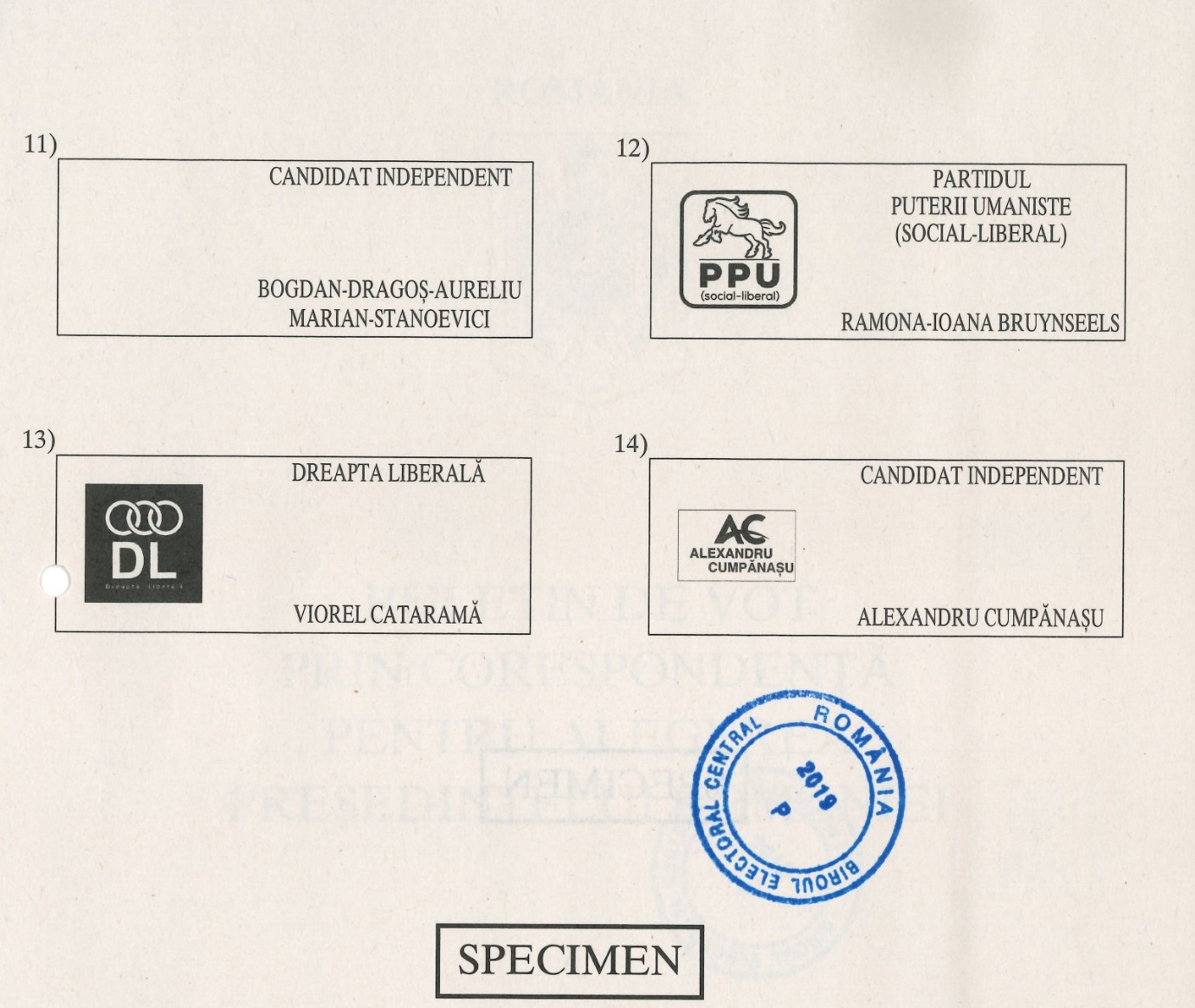 Iată cum arată buletinul de vot pentru alegerile prezidențiale din 10 noiembrie 2019.
