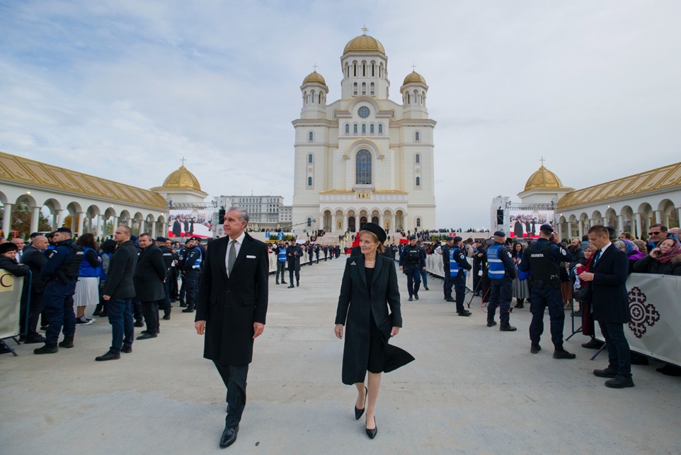 „Admir profund faptul că, deşi în vremuri grele, strămoşii mei Carol I şi Ferdinand I au găsit puterea şi chibzuinţa de a se gândi, ani de-a rândul, la ridicarea unei catedrale naţionale la Bucureşti. Paşii instituţionali făcuţi de ei nu au putut fi urmaţi de Regii Carol al II-lea şi Mihai I, din cauza tragediilor secolului al XX-lea, dar au dat roade peste timp, în anii noştri. Regele Mihai, tatăl meu, a avut parte de o lungă viaţă, în care a putut conlucra cu patru Patriarhi ai României, în ani nu tocmai uşori, Patriarhii Miron, Nicodim, Teoctist şi Daniel. Sunt mândră de prezentul românesc, în care legătura dintre Coroană şi Biserică este tot atât de statornică precum oricând. Sunt, de asemenea, plină de speranţă pentru viitor, în care societatea românească va găsi dreapta balanţă între modernitate şi credinţă, între prosperitate, libertate şi păstrarea identităţii naţionale. Aşa să ne ajute Dumnezeu!”, a subliniat Custodele Coroanei Române.