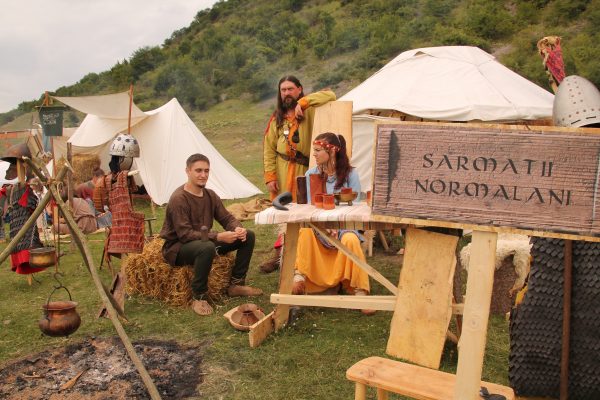 În tabăra sarmaţilor e linişte, iar replicile după costumele antice atrag imediat atenţia datorită coloritului viu. În capătul aşezării sunt cei de la Tomis care, cu jilţul lor masiv de lemn, au atras atenţia unui poliţist. Omul se potriveşte între braţele cu cap de lup şi, după zâmbet, se vede că-i pică mai bine tronul decât scaunul de birou.