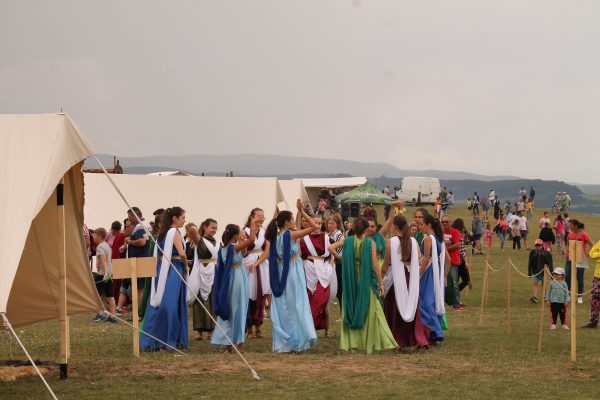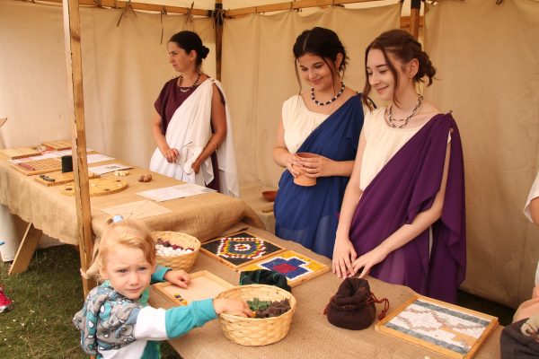 Tabăra romană freamătă de vizitatorii: copiii sunt prinşi de jocurile antice ori învaţă de la Florina Poenaru cum se scria pe tăbliţele cerate. “Elevii” apucă atent un stylus cu care schijelesc tot ce le trece prin cap, în româneşte. În pauză, Florina ajunge la … salon.