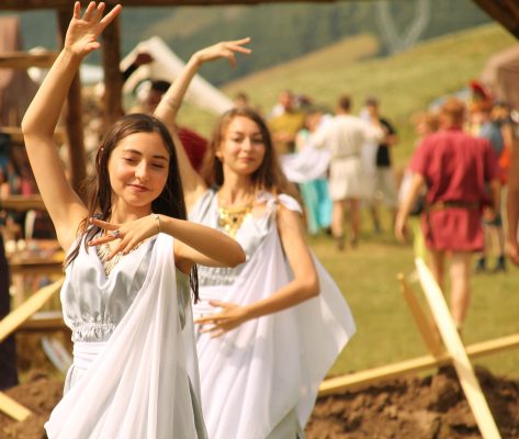 Priveşti momente cu daci, te uiţi după romani şi gladiatori, ridici ochii după parapante sau zâmbeşti la năzbâtiile copiilor care şi-au făcut trupe şi strigă cât îi ţin plămânii: “Dacia! Liberă!”, “Roma victrix!” sau “Retro”? În fiecare loc al festivalului se petrece ceva interesant şi nu ai pierde nimic! Brusc, muzica se schimbă şi te înfiori: din palisada dacică, un şir de femei cernite ies urmate de bărbaţi care poartă către rug, pe scuturi, un trup învelit în pânzeturi.