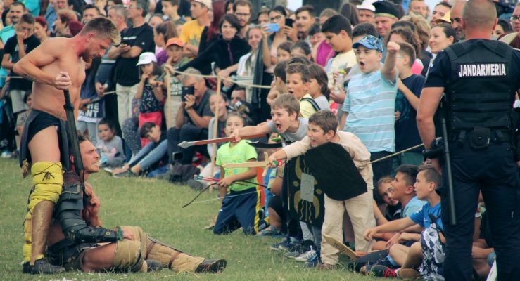 La finalul luptei, când publicul ar trebui să hotărască soarta învinsului, se vede clar că nu suntem departe de cruzimea antichităţii. Prea puţini cer “Mitte!”, se preferă: ”Iugulaaa!” Duminică, scenariul îl aduce în mijlocul gladiatorilor pe mirele de sâmbătă. Daniel Iakob se zbate aprig în mâinile romanilor şi unul din soldaţi îl mustră că l-a lovit la deget. Când scapă, dacul se repede după Vlad care o taie repejor şi cere gladiatorilor să îl omoare pe dacul prizonier. Spre cinstea lui, Daniel se lasă greu doborât şi, chiar când crezi că e mort, deschide uşurel ochii şi se întinde spre o suliţă. Ploaia pe care zeii daci au ţinut-o departe de festival în ciuda codurilor portocali de vreme severă, cade vreo două minute, dar nimeni nu se sperie, nimeni nu pleacă. E prea fain spectacolul!