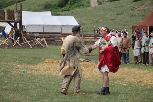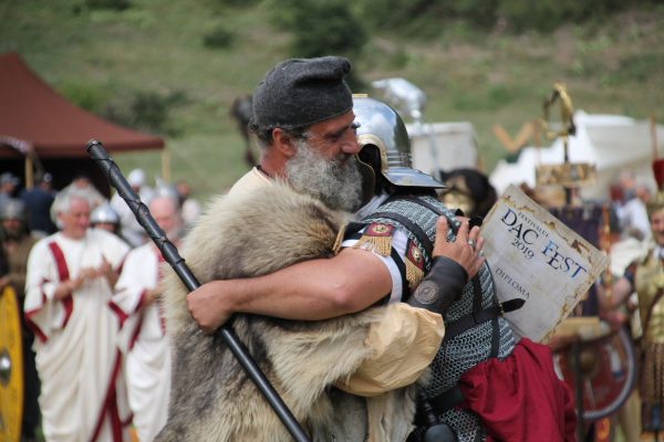 E un schimb cultural foarte frumos. Venim din Italia şi suntem “Romanitas”, o asociaţie culturală care duce povestea Romei în jurul lumii”, spune Marcus Flavius, în rolul lui Imperator Traiano. Din când în când, câte un nobil dac sau chiar Regele Decebal păşesc în tabăra romană să pună la punct detaliile bătăliilor. Turiştii fac zeci, chiar sute de fotografii. Ruxandra Damian stă în Canada şi lucrează la Ministerul Culturii. A venit în vizită în România şi a ţinut să vadă şi Dac Fest-ul: “E splendid! E ceva extraordinar, că se organizează aşa ceva, un eveniment cultural unde ai foarte multe de învăţat: toată lumea este pasionată de ceea ce face şi aş vrea să vin şi la alte ediţii!” Şi-a întâlnit chiar şi un amic, Stephen, şamanul canadian care şi-a făcut “Vatra” la Costeşti: “Ce mică-i lumea!”, exclamă bărbatul, care nu se dă dus de lângă Mugur Pop şi caii lui.