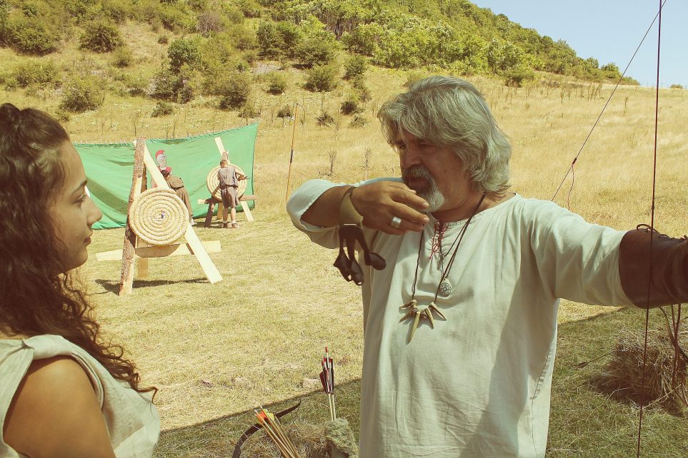 La marginea satului dacic, este lumea arcaşilor. „Proful” de tras cu arcul al TDA, Constantin Vlăsceanu, are împrejur o mulţime de copii, tineri şi adulţi dornici să înveţe sau să se perfecţioneze. Se stă la coadă şi fiecare vizitator are parte de o mică lecţie şi câteva încercări cu săgeţile. Cum era de aşteptat, lângă ţintele de paie sunt siluetele unor romani, numai bune de ciuruit.
