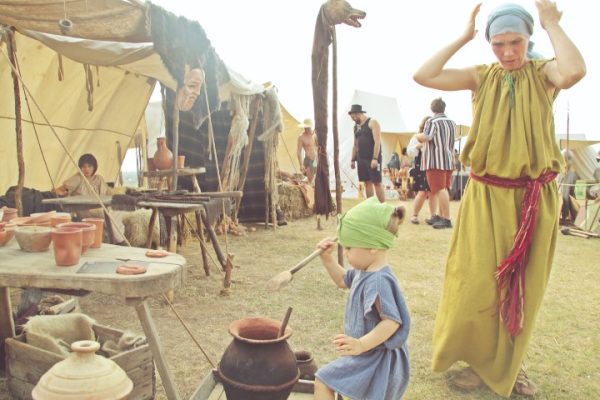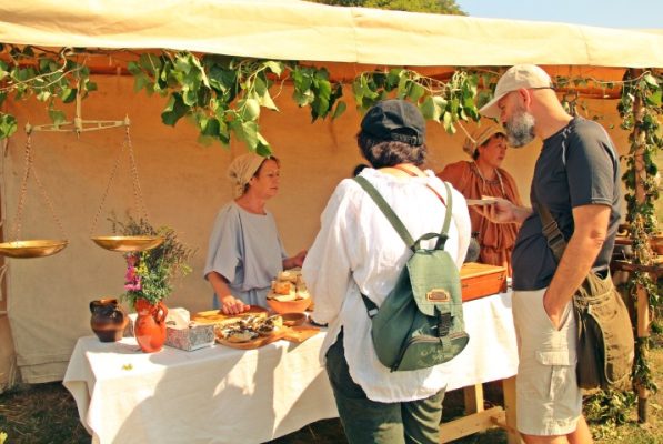 Asociaţia Terra Dacica Aeterna aduce aici cele mai bune trupe de reenacment, cu sute de membri costumaţi în daci, sarmaţi sau romani, cu ateliere unde poţi poposi o întreagă zi să asculţi povestea fascinantă a străvechilor meşteşuguri sau să încerci ţesutul, modelarea lutului sau a pietrei, prelucrarea osului, a lemnului sau a metalelor. „Avem atelierul de turnat bijuterii în bronz, atelierul de artilerie romană cu scorpionul şi onagerul funcționale.