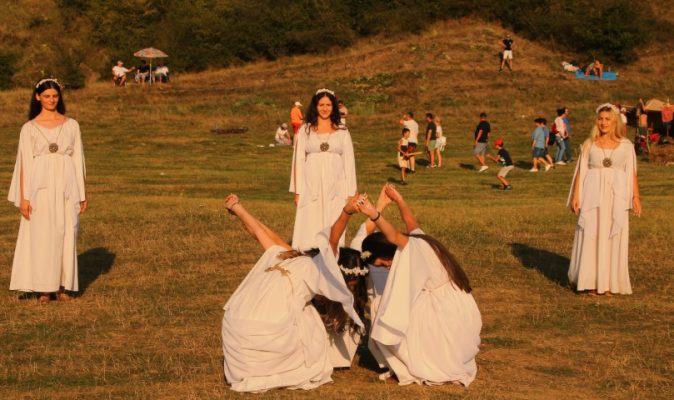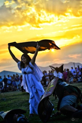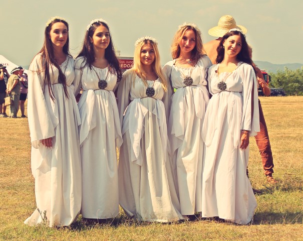 Tot aici îi întâlneşti pe gladiatori, tineri plini de energie, cu costumele şi armele lor ciudate, dar şi pe Zânele Zalăului, diafanele îmbrăcate în straie albe, o trupă care încântă cu momentele din festival. Dincolo, priveliştea e desprinsă parcă din frescele romane.