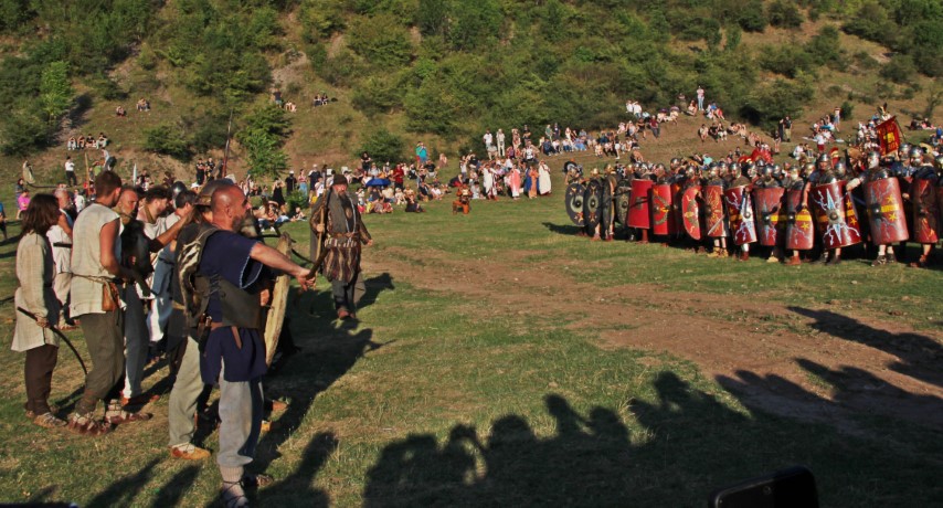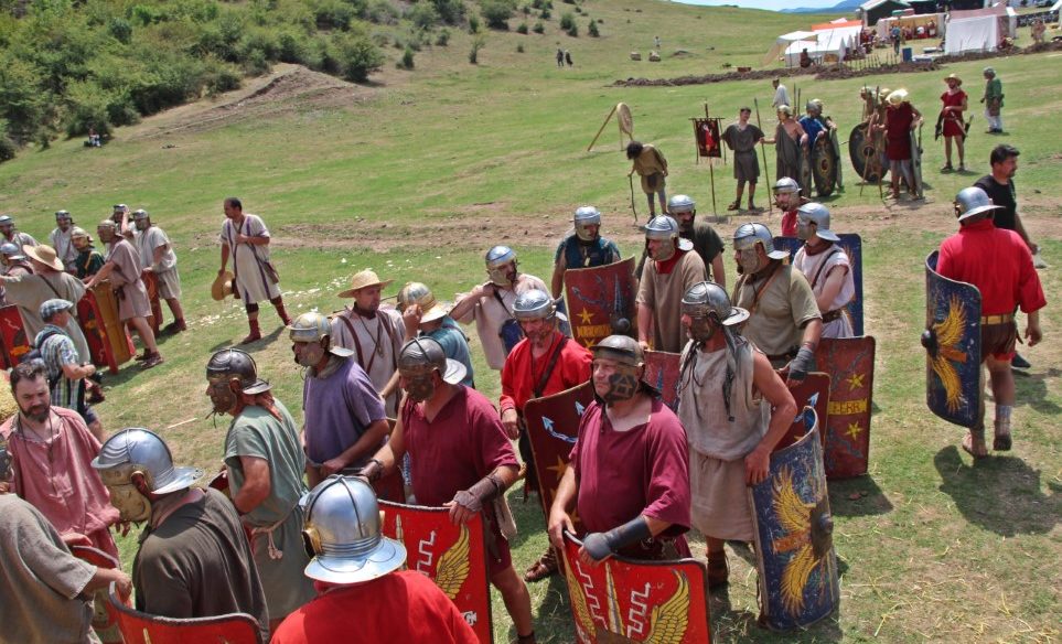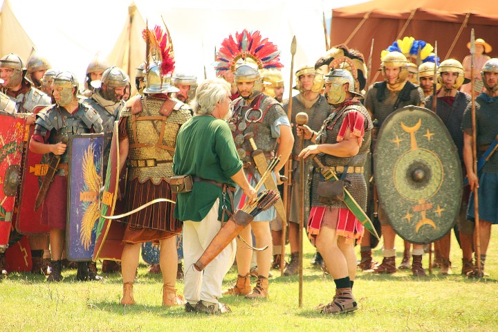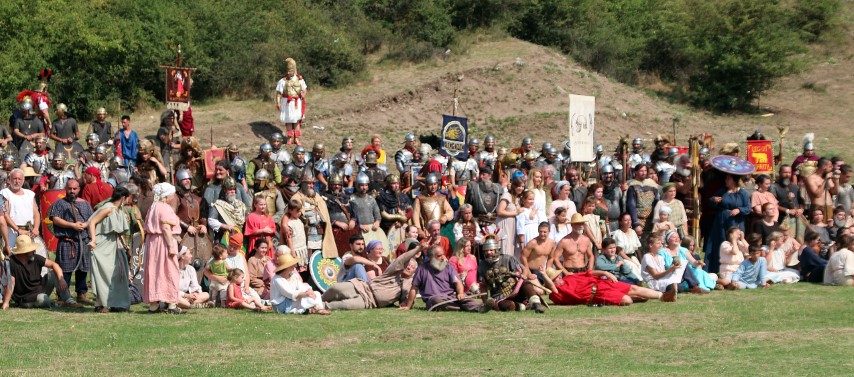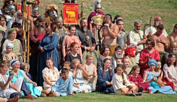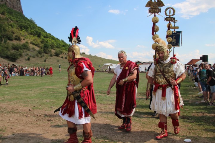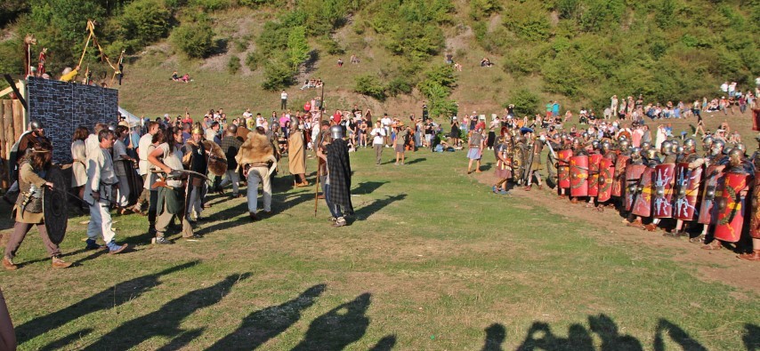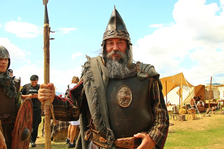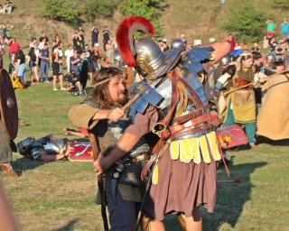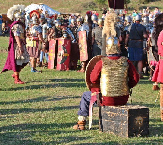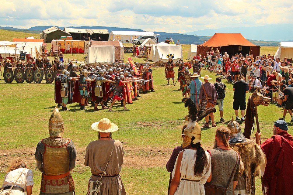 Îmbrăcaţi în straie croite după modele antice, zeci de reenactori se apropie de locul unde istoricul Tudor Roşu din Alba Iulia, el însuşi îmbrăcat în uniformă romană de gală, anunţă programul şi participanţii, vorbeşte despre trupele de reconstituire istorică din festival, despre romani şi gladiatori, despre daci, sarmaţi sau alţi barbari.