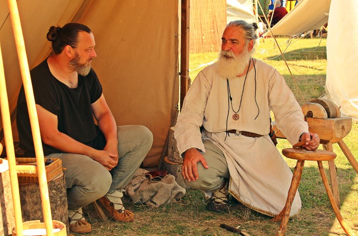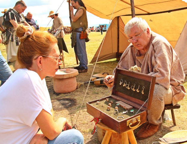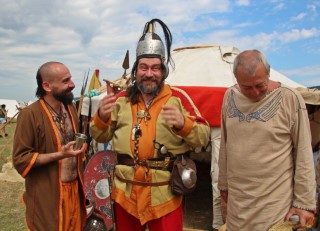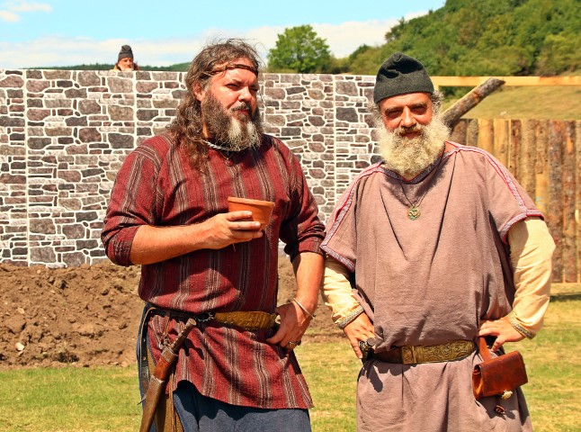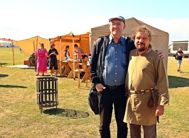 Dacul Marius Barbu, unul dintre cei mai cunoscuţi reenactori, îl ghidează pe profesorul Liviu Petculescu prin festival: „Lui îi datorez pasiunea pentru echipamentul militar, este un cadru didactic deosebit”, iar vizitatorul îi întoarce bucuria: „Orice profesor este încântat când elevul îl depăşeşte”.