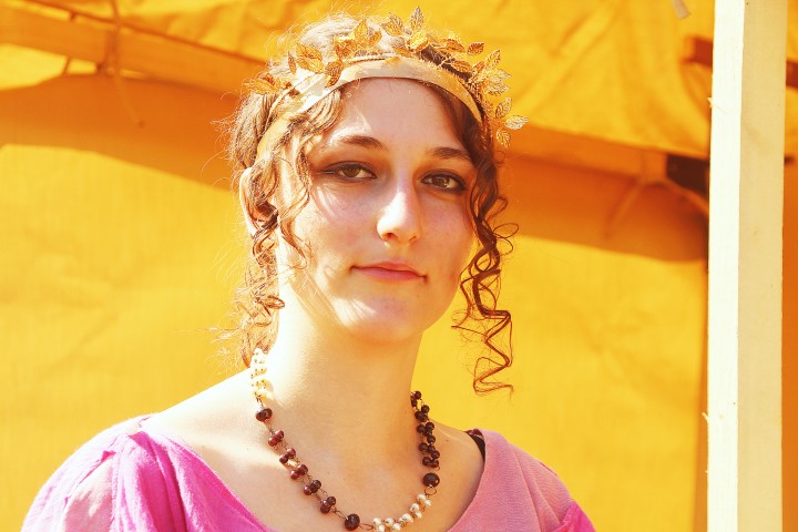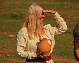 În apropiere, la corturile civililor romani, se leagănă elegant evantaiele. O droaie de vizitatori străini vorbesc în engleză cu o frumuseţe de fată, iar Joey Danko le răspunde la fiecare întrebare. O dăciță cu păr de foc vine iute din sat. De la „Dacii Singidavei”, Ana Andreea Tomuș și-a înfipt un capăt de săgeată în pleata bogată și plină de cârlionți. Pare a fi întruchiparea prințesei Merida din „Neînfricata”, producția Disney și oamenii o opresc pentru fotografii.