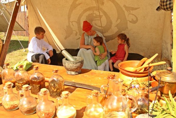 Din umbra casei, cel mai cunoscut vindecător din reenacmentul antic, Gerula–Mugur Pop din TDA – adună câteva bucăți din plantele prinse la soare şi puse în bătaie vântului, le aruncă în mojar, iar copila sa trece la măcinat. Bibi este unul dintre copiii festivalului, iar acum are și un frate de care trebuie să aibă grijă, să-l mai necăjească oleacă ori să-l mai îndrume.